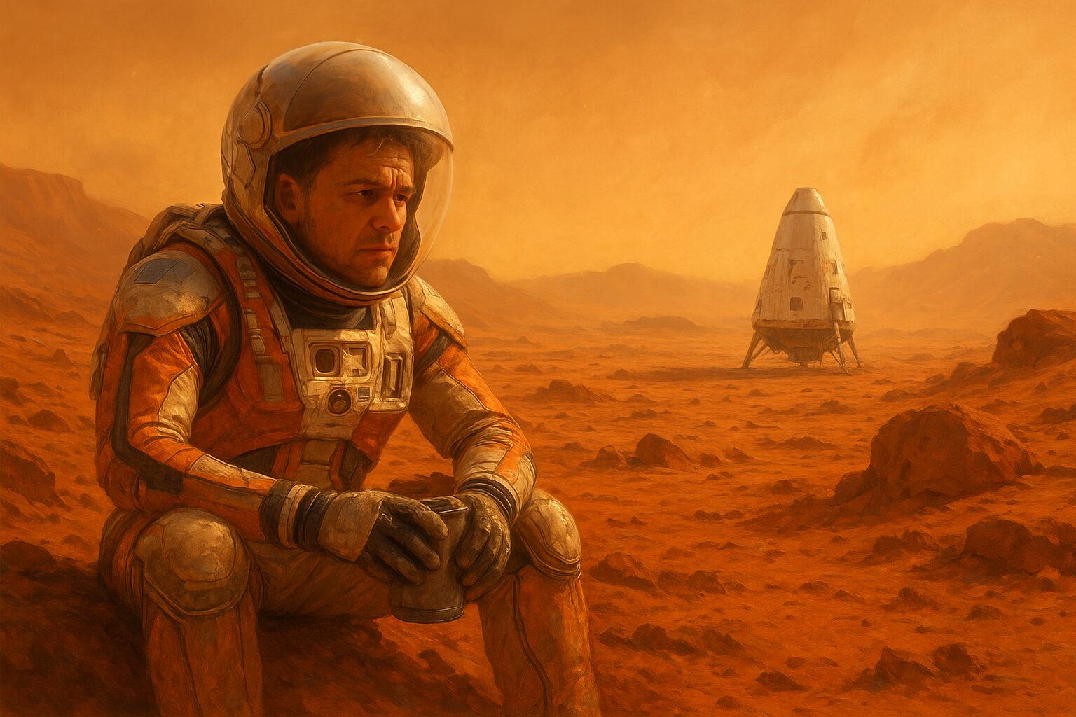 اما مارک نمرده بود. وقتی به هوش آمد، دید در شنهای سرخ افتاده و لباس فضاییاش سوراخ شده. با دستان لرزان لباس را ترمیم کرد و خودش را به پایگاه کشاند. بعد از بخیهزدن زخم، در سکوت خیره به سقف ماند و گفت: