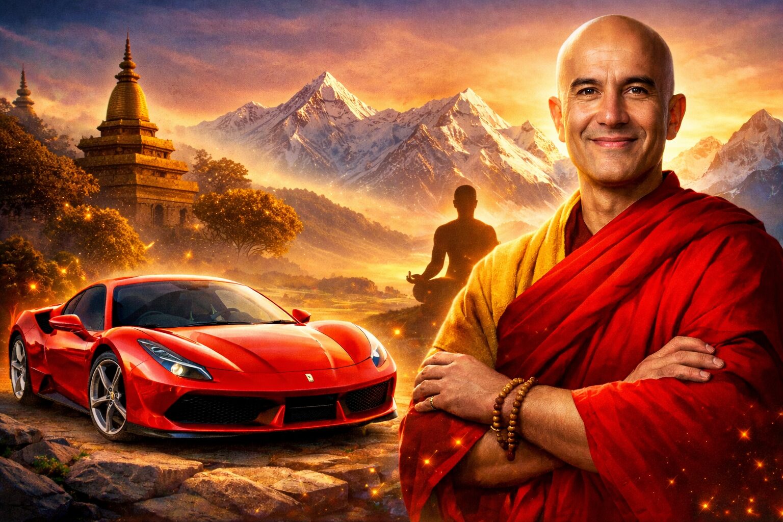 پس از این بحران، جولیان تصمیم میگیرد مسیر زندگیاش را بهطور کامل تغییر دهد. او داراییهایش—از جمله فراری معروفش—را رها میکند و وارد سفری معنوی میشود تا معنای واقعی زندگی، آرامش درونی و خوشبختی را پیدا کند.